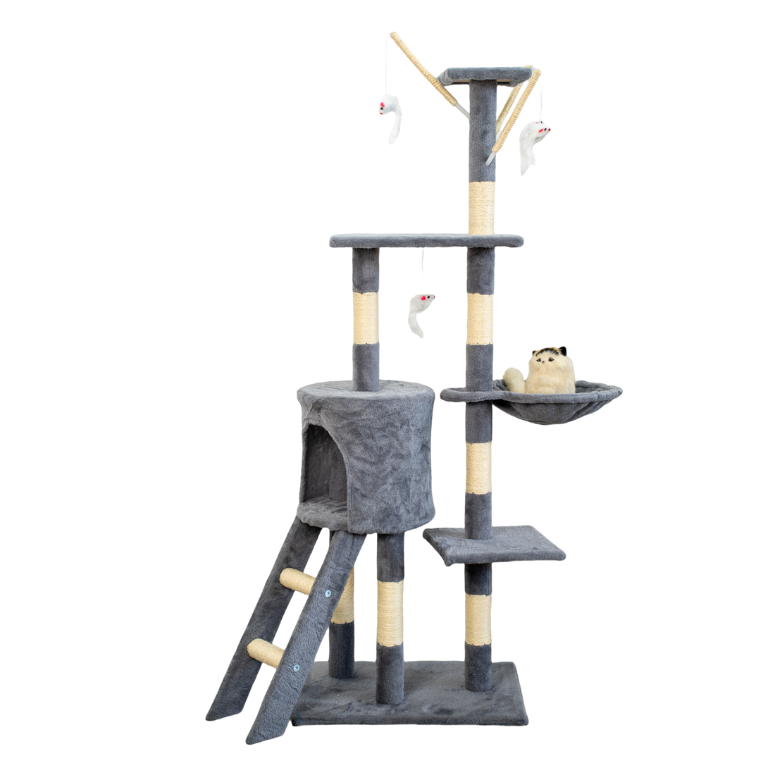 Cat Tree Tower – Multi-Level Scratching Post with Hammock, Condo & Hanging Toys